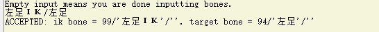 需要注意的是:只有出现了如下图所示的“ACCEPT”信息才说明你的IK骨正常关联上了,出现其他的任何信息都为关联失败。