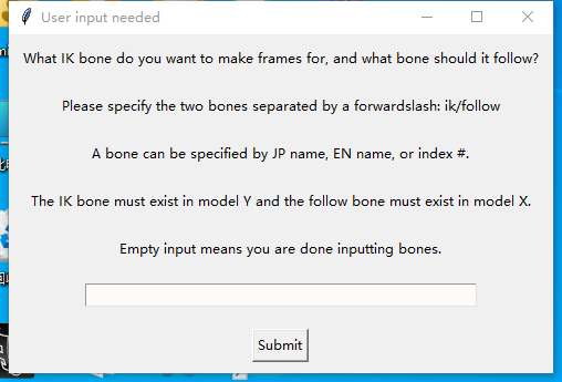 现在,你需要将模型Y中的IK骨骼和它所对应连接的骨骼(这些骨骼在模型X中当然也要存在并且有帧数据)关联起来。