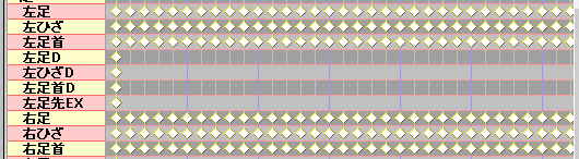 这份数据使用了左右足骨、左右ひざ骨和左右足首骨这六个骨骼,帧范围是从0到3149帧。
